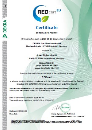 Zertifikat für Bio-Nachhaltigkeit herunterladen |